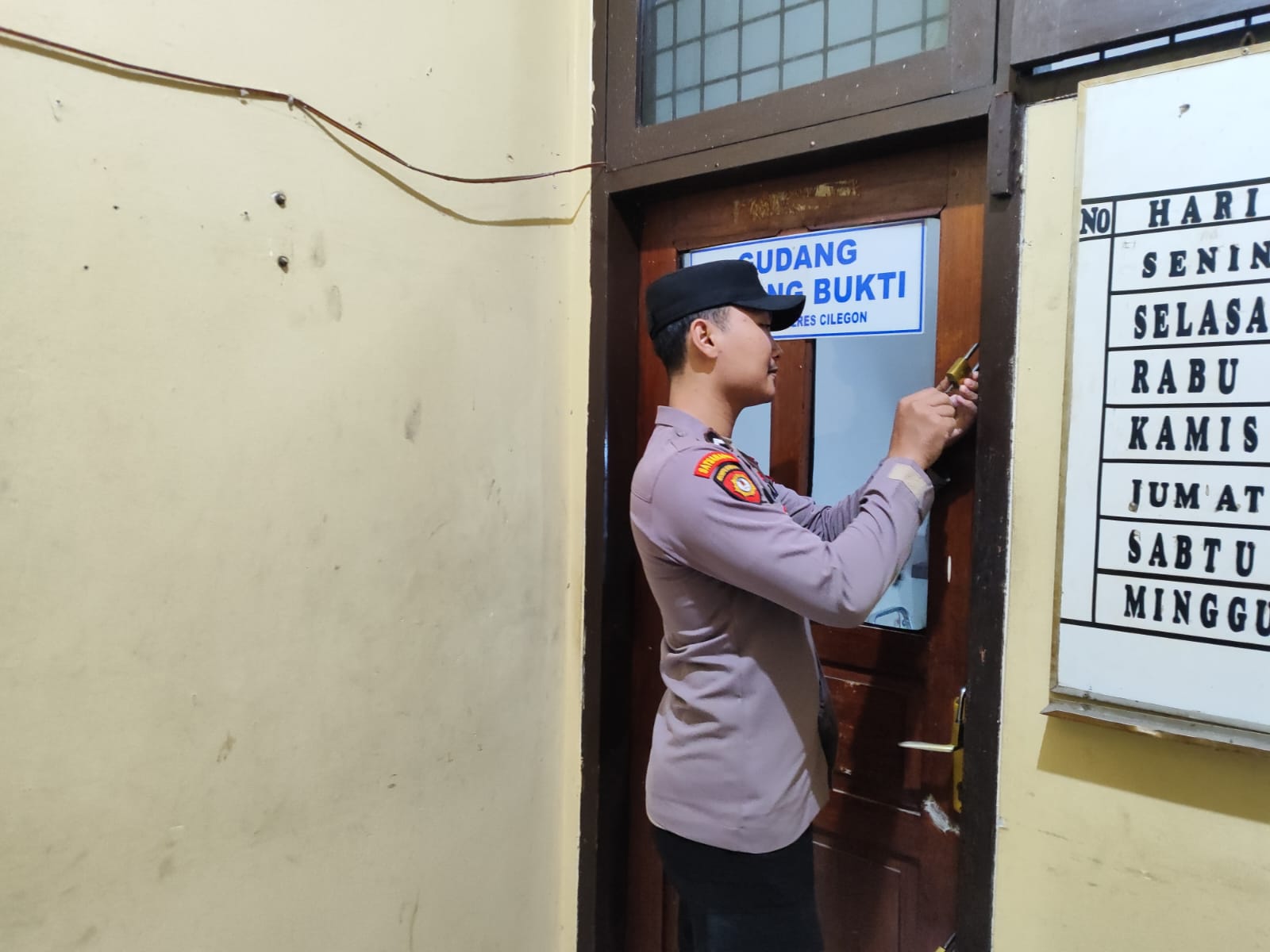 Cilegon, Polres Cilegon Polda Banten. Di gudang barang bukti Polres Cilegon. Kapolres Cilegon Polda Banten AKBP Dr. Martua Raja Taripar Laut Silitonga,S.H,.S.I.K.,M.Si Kepada Kasat Tahti Polres Cilegon Iptu Yudi Hartono mengingatkan agar anggota piket sattahti agar tetap terus kontrol barang bukti yang sudah dititipkan di sattahti polres cilegon.(07/01/2026)