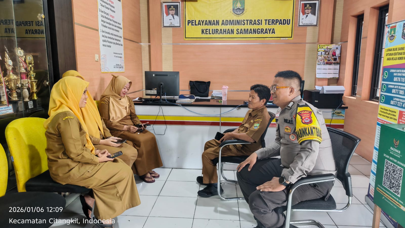 Cilegon -  Bhabinkamtibmas Kelurahan Samangraya Polsek Ciwandan Polres Cilegon Polda Banten BRIPKA Marisco melaksanakan kegiatan sambang Dialogis Dan silaturahmi Bersama Lurah Dan Staff Kelurahan Samangraya Kecamatan Citangkil Kota Cilegon, Selasa (06/01/2026).