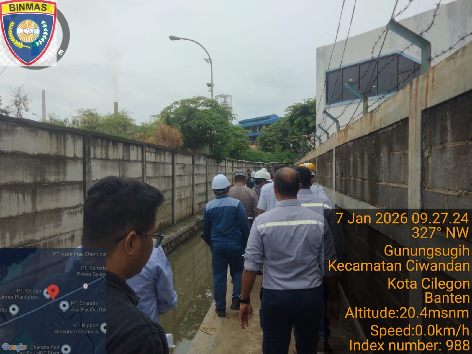 Cilegon - Polres Cilegon melalui Polsek Ciwandan melakukan pendampingan pengecekan saluran air atau dreinase di wilayah Gunung Sugih, Ciwandan, bersama dengan FORKOPIMDA, FORKOPINCAM, dan industri yang tergabung dalam Forum FIKS (Forum Industri Kepuh dan Gunung Sugih). Rabu (07/01/2026).