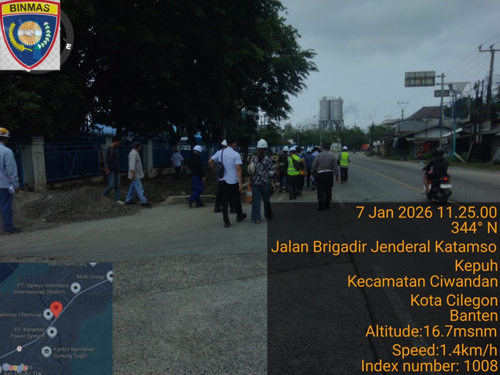 Cilegon - Polres Cilegon melalui Polsek Ciwandan melakukan pendampingan pengecekan saluran air atau dreinase di wilayah Gunung Sugih, Ciwandan, bersama dengan FORKOPIMDA, FORKOPINCAM, dan industri yang tergabung dalam Forum FIKS (Forum Industri Kepuh dan Gunung Sugih). Rabu (07/01/2026).