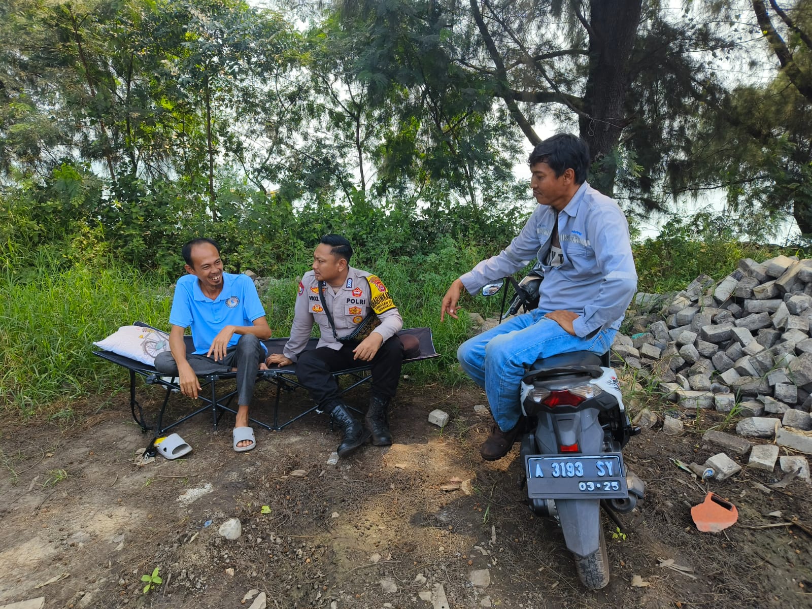Jalin Silaturahmi, Bhabinkamtibmas Pelabuhan Polsek KP Banten berbincang ke Buruh Pelabuhan