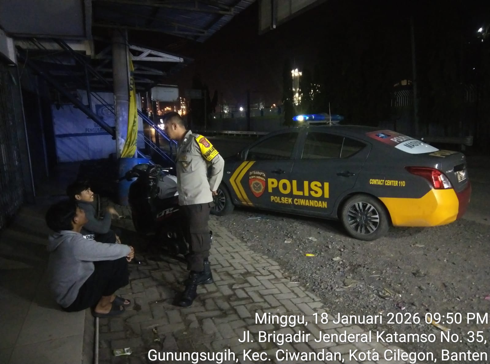 Cilegon - Dalam rangka menekan tindak kriminalitas serta untuk memberikan rasa aman dan nyaman kepada masyarakat terutama pada malam hari,Personil Polsek Ciwandan Polres Cilegon Polda Banten melakukan patroli malam hari di daerah-daerah yang rawan kriminalitas, Senin (19/01/2026).