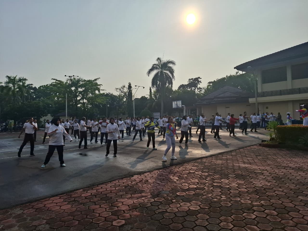Cilegon,Polres Cilegon Polda Banten Pada Jumat/23/01/2026 Pukul 07.15 Wib, Personil  Polres Cilegon, melaksanakan kegiatan olahraga mandiri di lapangan Polres Cilegon dan melaksanakan senam aerobik di Lapangan polres cilegon.