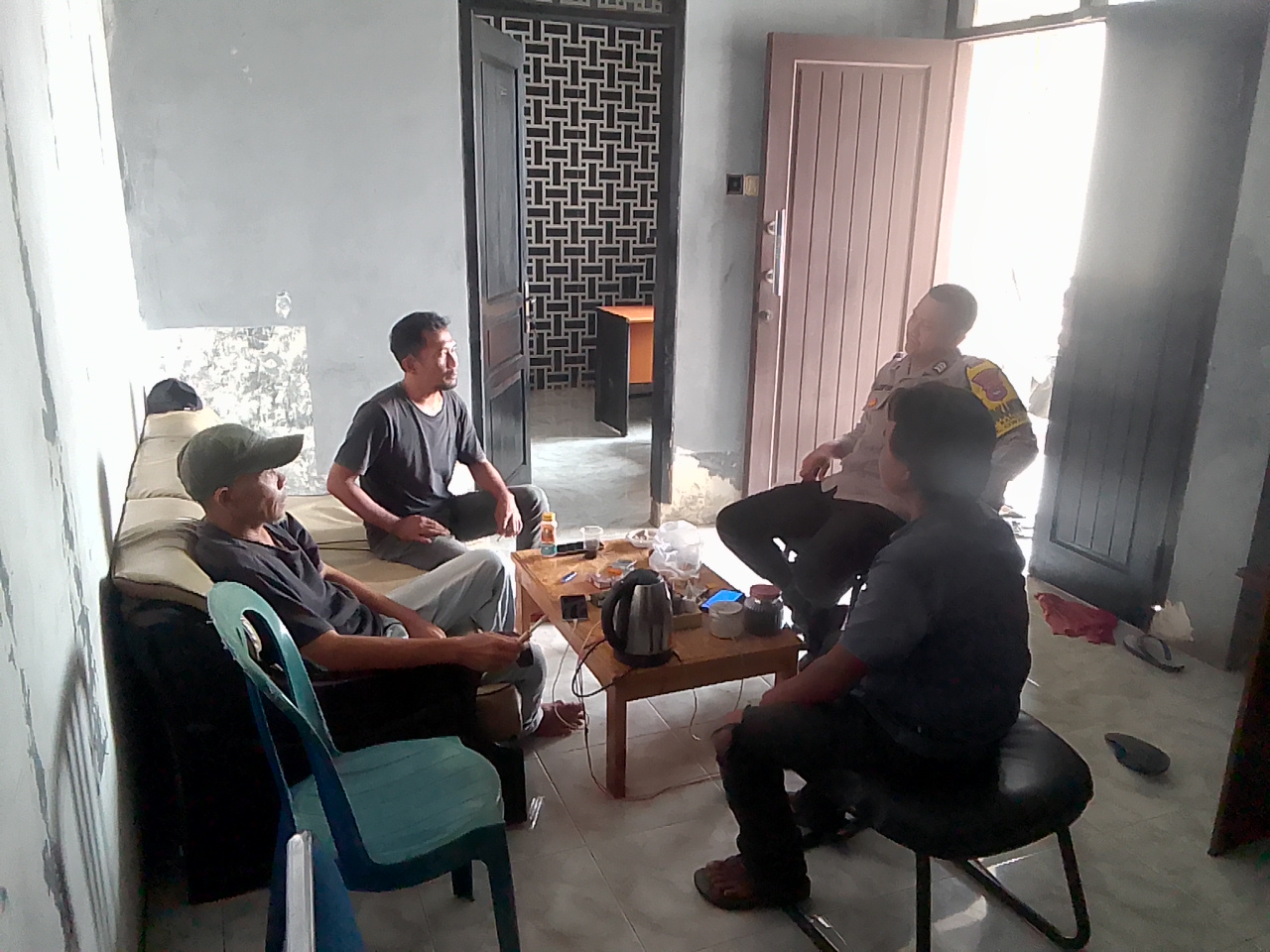 Saat Sambang Bhabinkamtinmas Koordinasi Dengan Masyarakat Dan Tukar Informasi