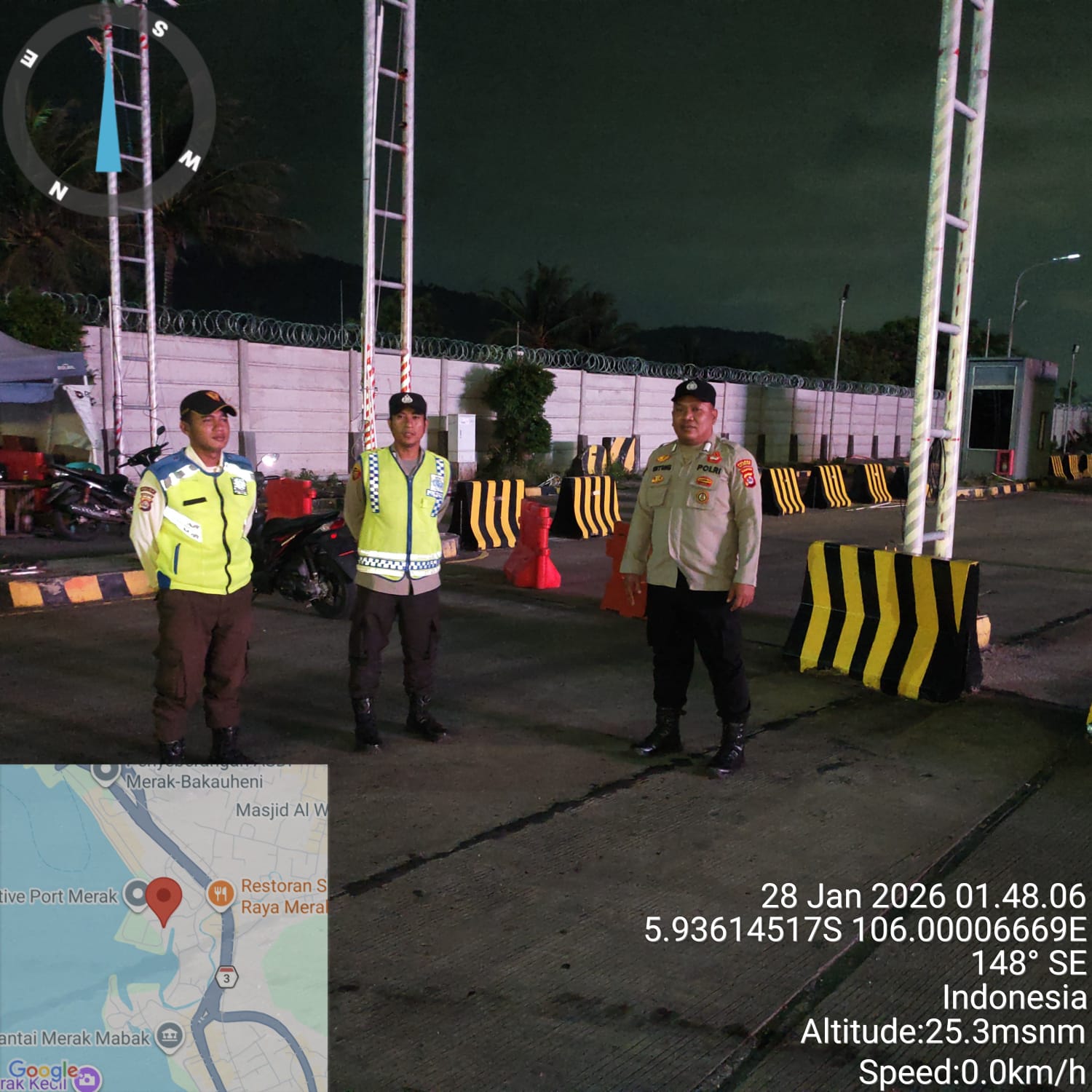 Cilegon - Personil Polsek Kskp Merak Polres Cilegon melaksanakan patroli di kawasan pelabuhan merak memberikan rasa aman dan damai, Rabu (28/01/2026)