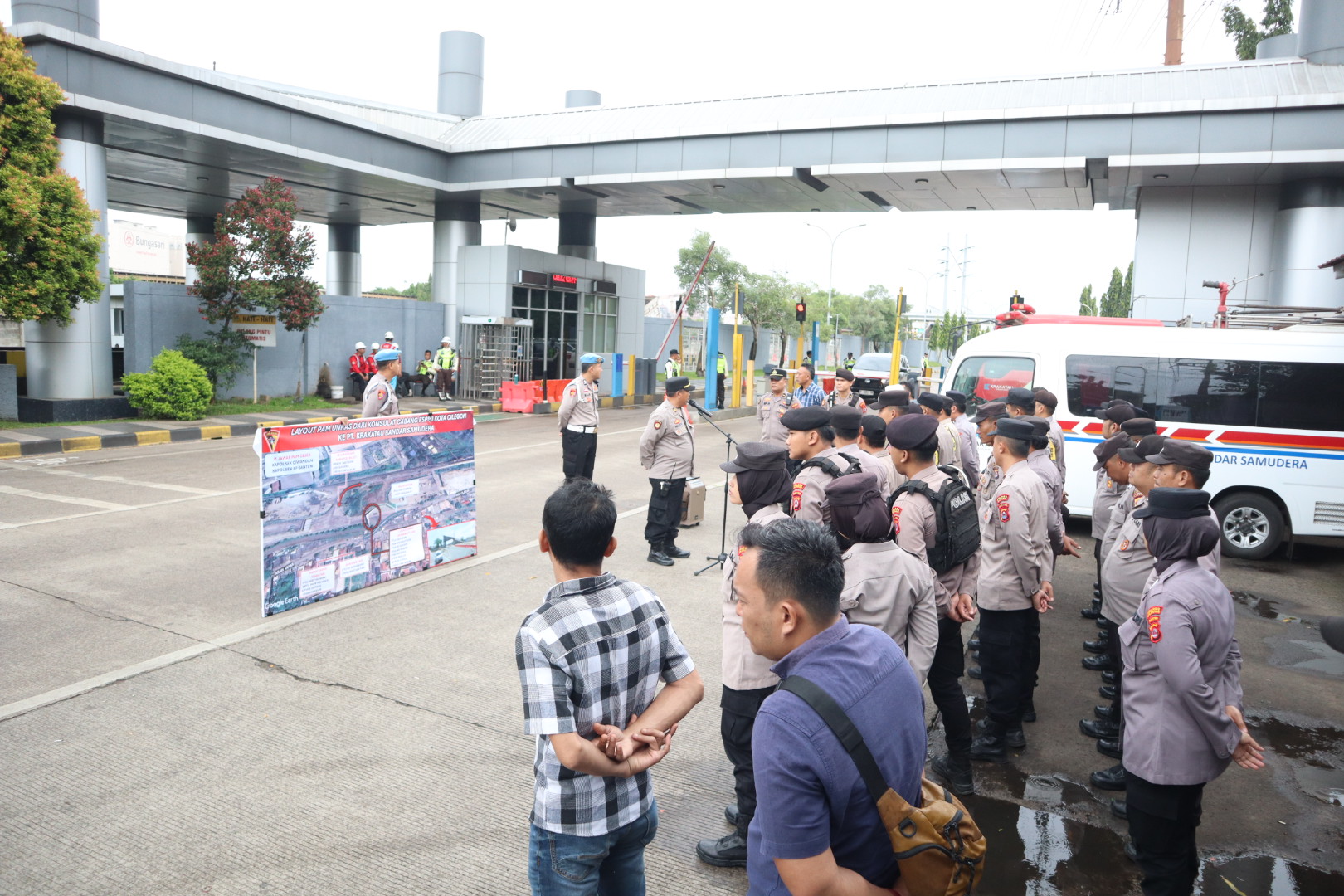 Apel pengamanan dipimpin oleh Panit Samapta Polsek Ciwandan IPTU Wahyudin, sebagai bentuk kesiapan personel dalam mengamankan jalannya penyampaian pendapat di muka umum agar berlangsung aman, tertib, dan kondusif.