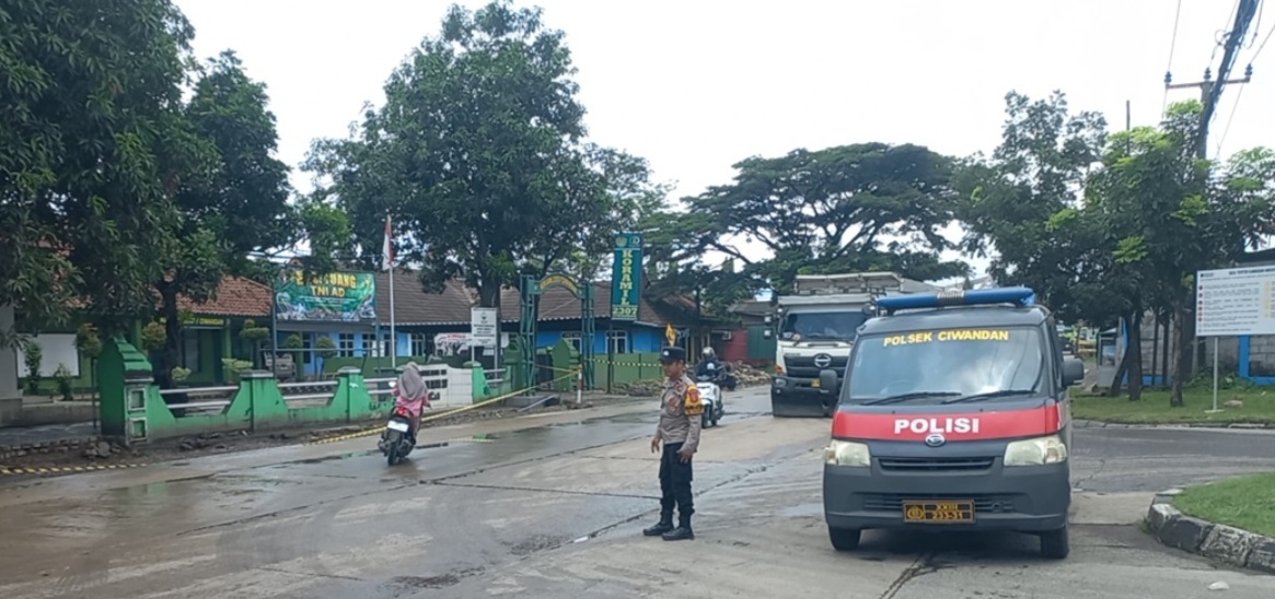 Hujan Intensitas Tinggi, Personil Polsek Ciwandan Antisipasi Genangan Air Dan Banjir