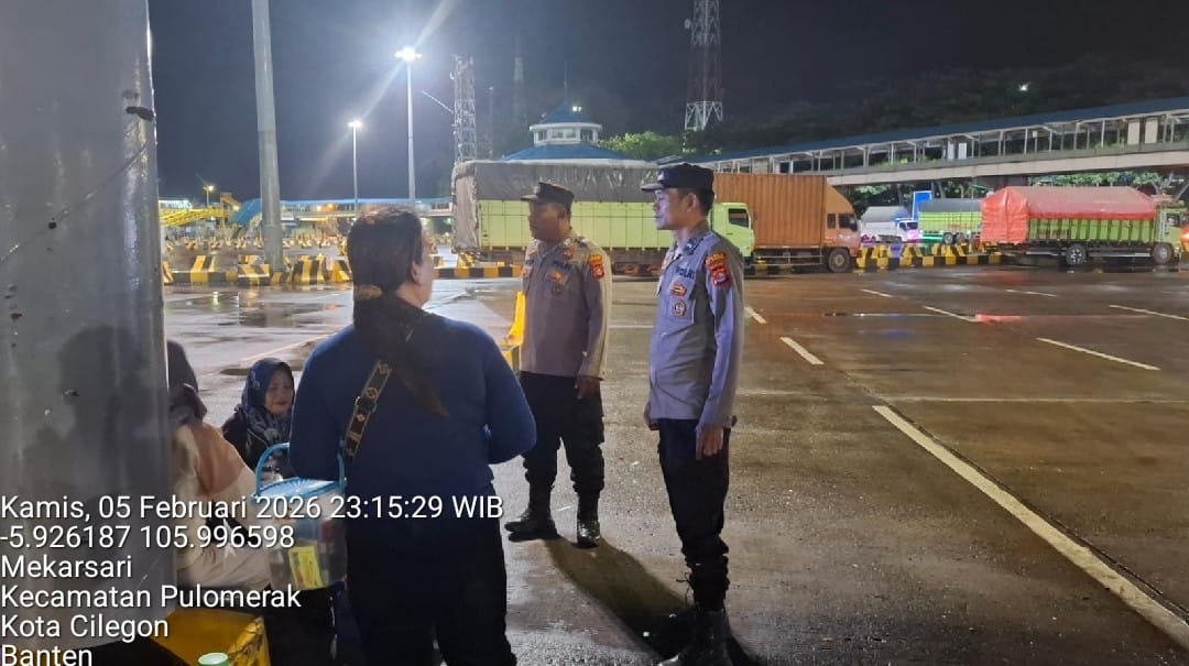 Cilegon - Personil Polsek Kskp Merak Polres Cilegon melaksanakan patroli di kawasan pelabuhan merak memberikan rasa aman dan damai, Jumat (06/02/2026)
