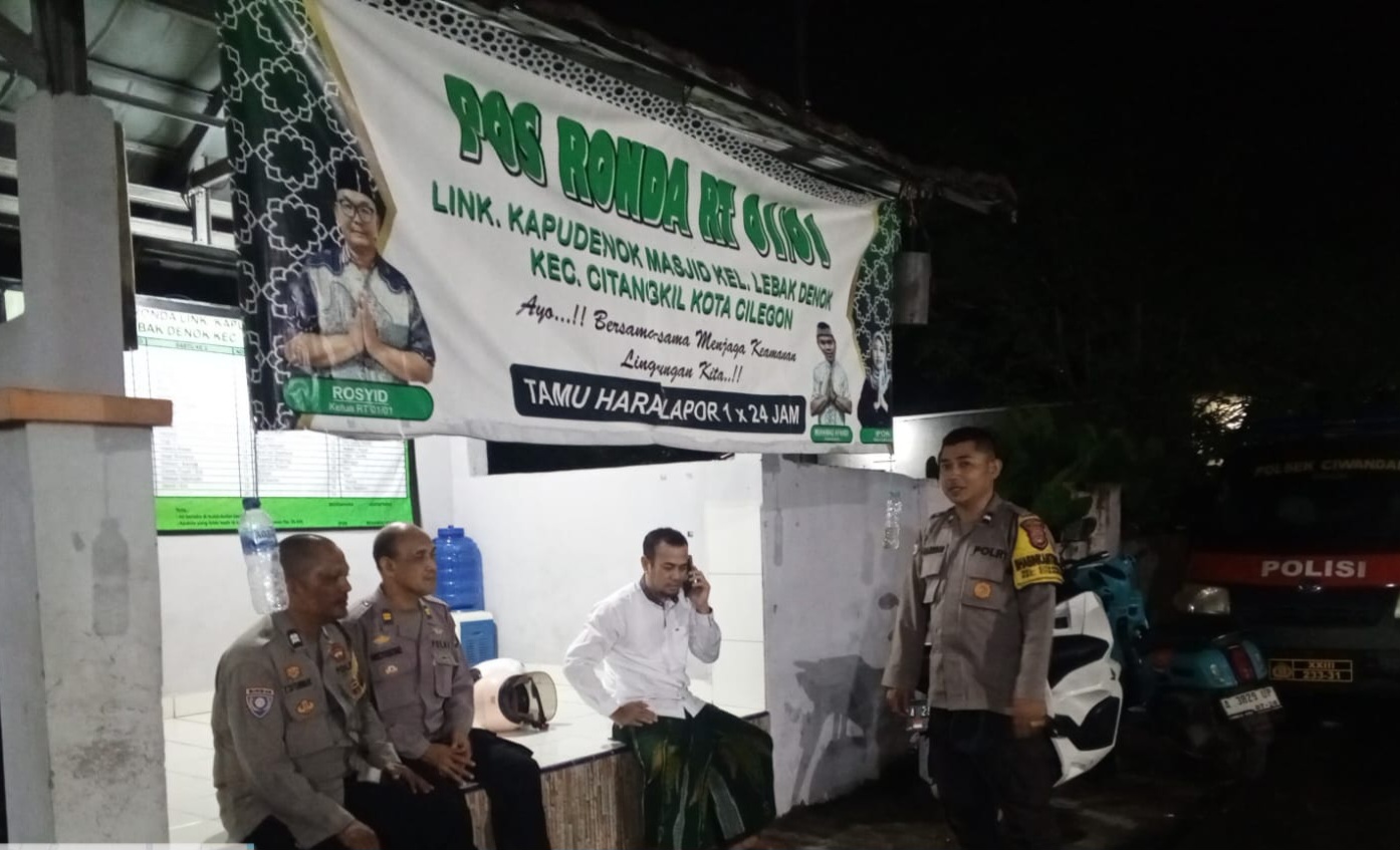 Kapolres Cilegon Polda Banten AKBP Dr. Martua Raja Taripar Laut Silitonga Melalui Kapolsek Ciwandan Polres Cilegon Polda Banten KOMPOL Achri Dwi Yunito mengatakan bahwa personelnya memantau kegiatan Siskamling di Daerah binaannya untuk menjaga stabilitas keamanan dan ketertiban masyarakat.