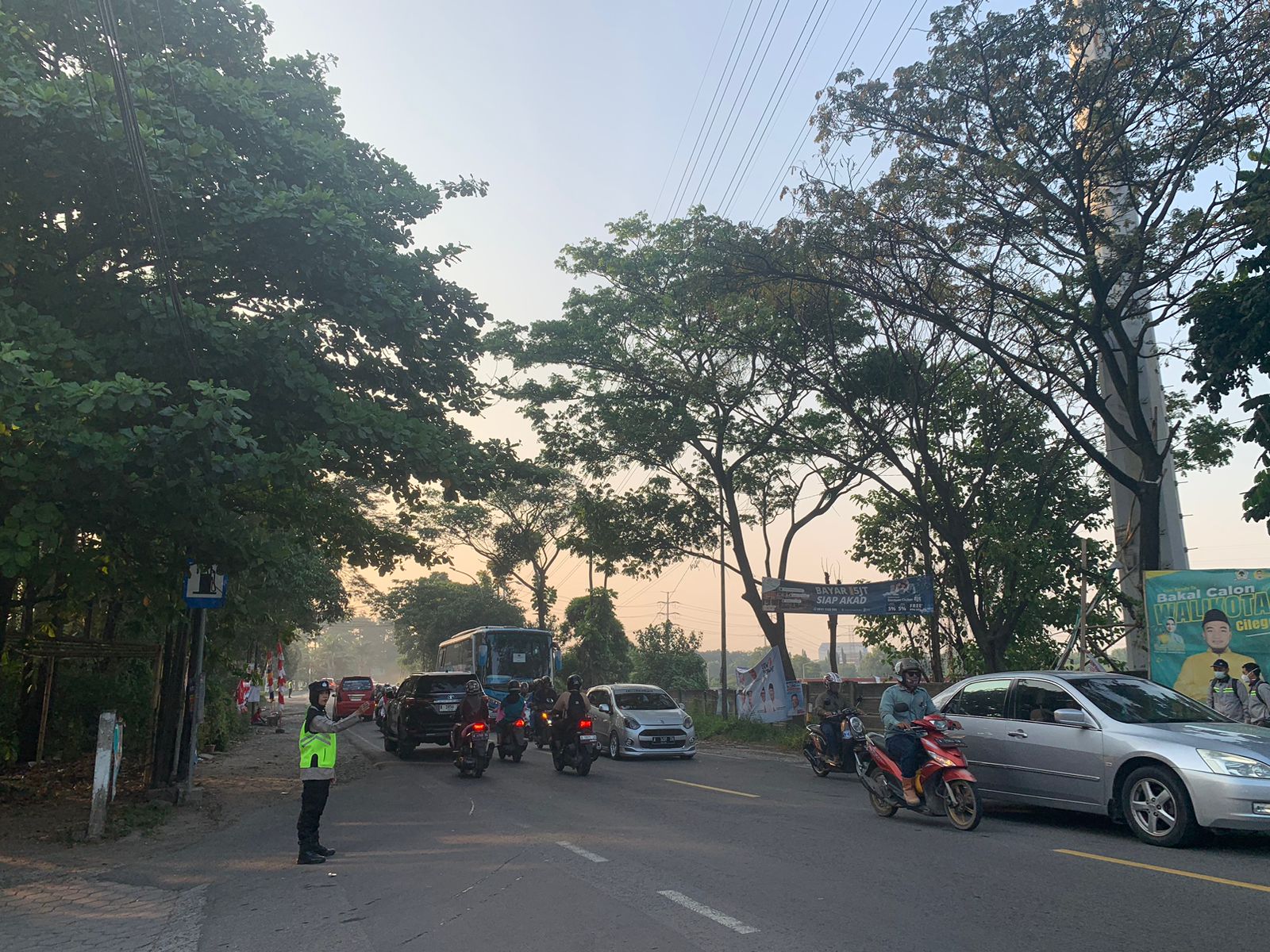 Polres Cilegon, Aipda Emi Prasetyo melaksanakan kegiatan pengaturan arus lalu
