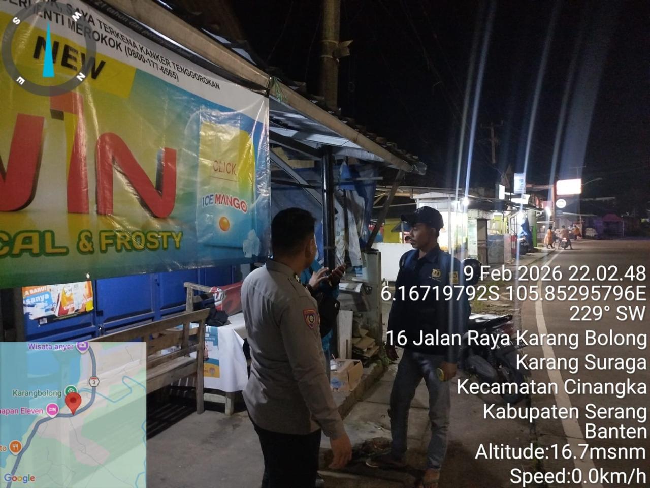 *POLRES CILEGON* - Patroli malam hingga dini hari ini rutin dilakukan oleh anggota Kepolisian Polsek Cinangka Polres Cilegon Polda Banten.