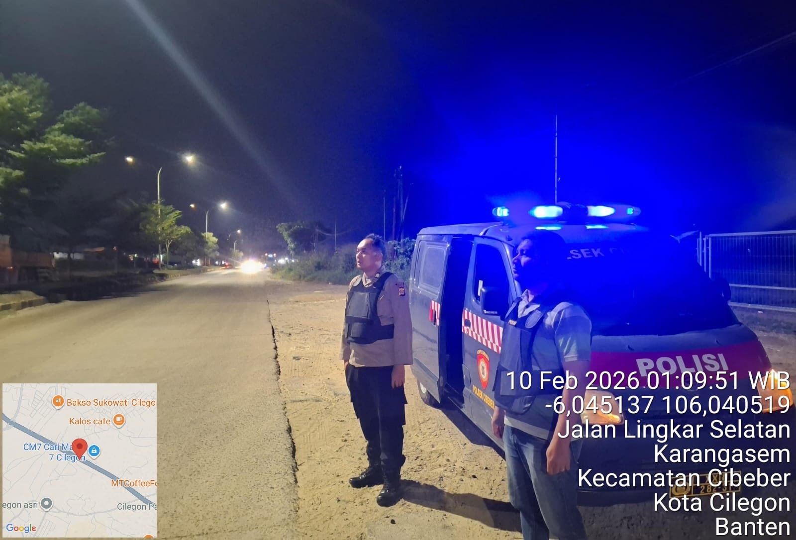 Cilegon – Polres Cilegon Polda Banten Dalam Rangka Pencegahan Street Crime dan Memelihara situasi keamanan dan ketertiban serta memberikan rasa aman dan nyaman di masyarakat, Salah satu upaya untuk mewujudkan hal tersebut sebagaimana yang dilakukan oleh Personil Polsek Cibeber Polres Cilegon Polda Banten melaksanakan giat patroli blue light malam hari hingga menjelang pagi, Selasa (10/02/2026).