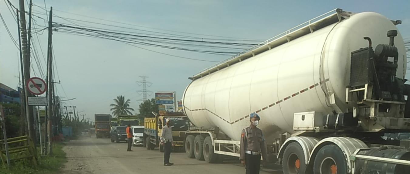 Laksanakan Strong Poin Di Pagi Hari, Bripka Tri Handoko dan Bripka Heru Bhabinkamtibmas Laksanakan Giat Pengaturan Lalin Di Jalan Raya Wadas Bojonegara