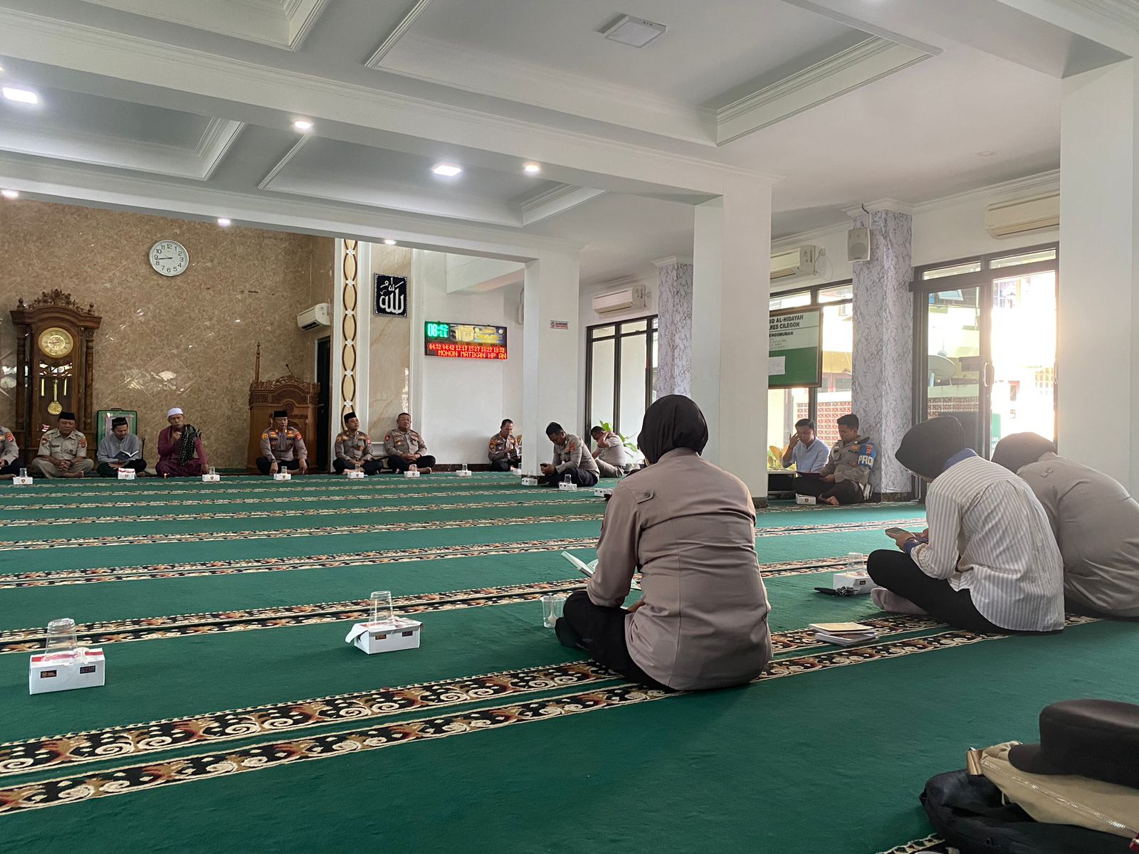 Personel Seksi Keuangan (Sikeu) Polres Cilegon mengikuti kegiatan Pembinaan Rohani dan Mental (Binrohtal) yang dilaksanakan di Masjid Al-Hidayah Polres Cilegon