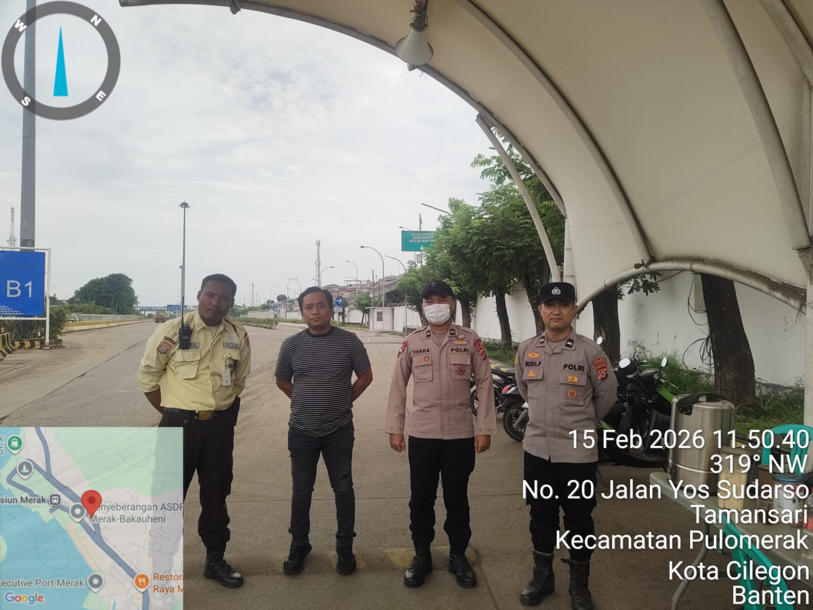 Cilegon - Personel Polsek Kskp Merak Polres Cilegon Polda Banten melaksanakan sambang dan patroli kawasan pelabuhan merak dalam rangka menjaga Harkamtibmas di Kawasan Pelabuhan Merak, Minggu (15/02/2026).