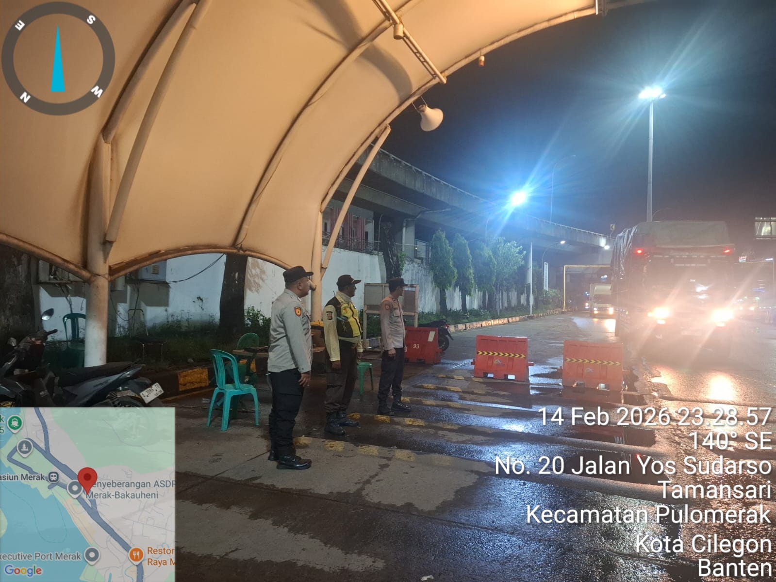 Cilegon - Personil Polsek Kskp Merak Polres Cilegon melaksanakan patroli di kawasan pelabuhan merak memberikan rasa aman dan damai, Minggu (15/02/2026)