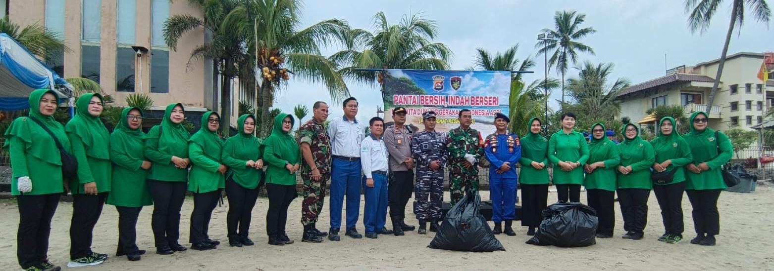 Anggota Polsek Anyar Hadiri Kegiatan Bersih-Bersih Di Pantai Bandulu dalam Rangka Mendukung Gerakan Indonesia ASRI