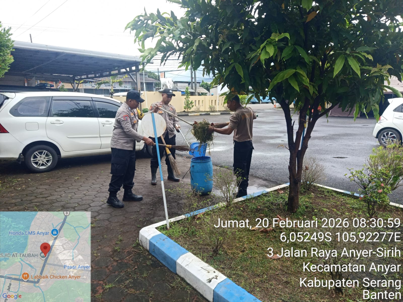 Anggota Polsek Anyar melaksanakan kegiatan Jumat Bersih di sekitar lingkungan Markas Komando (Mako) Polsek Anyar. Jumat (20/02/2026)