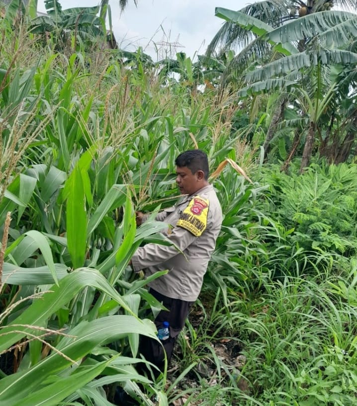 -Polres Cilegon-Polda Banten. Jumat.20 Februari 2026 – Bhabinkamtibmas Kelurahan Tegal Bunder, Aiptu Wawan Setia Budi, melakukan pemeriksaan dan pendampingan terhadap tanaman jagung yang ditanam warga di lingkungan Pasar Bunder, Kecamatan Purwakarta, Kota Cilegon. Dalam kegiatan tersebut, Aiptu Wawan memastikan kondisi tanaman jagung warga dalam keadaan baik dan tidak terindikasi diserang hama yang dapat mengganggu produktivitas.
