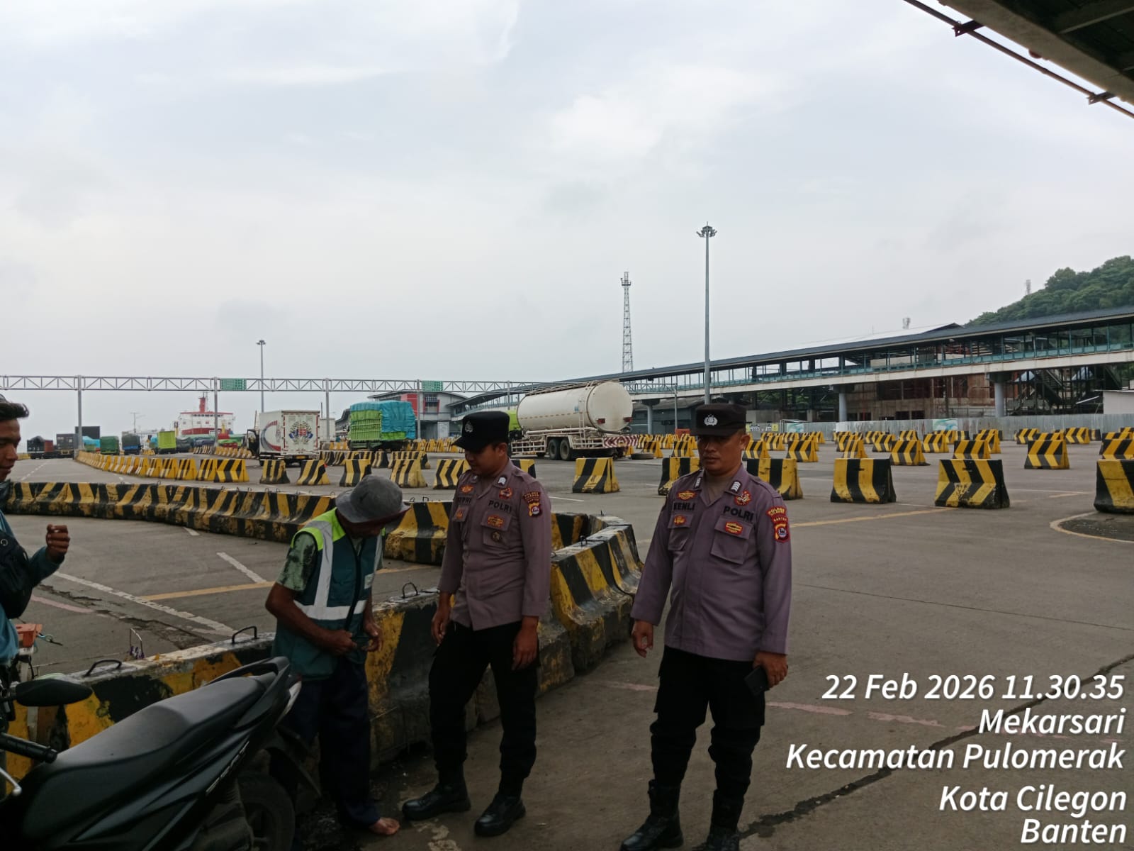 Cilegon - Personel Polsek Kskp Merak Polres Cilegon Polda Banten melaksanakan sambang dan patroli kawasan pelabuhan merak dalam rangka menjaga Harkamtibmas di Kawasan Pelabuhan Merak, Minggu (22/02/2026).