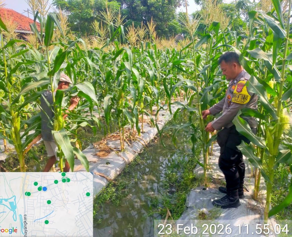 Personil Bhabinkamtibmas Polsek Purwakarta aktif dalam selalu melaksanakan Cek Tanaman Jagung Untuk Ketahanan Pangan