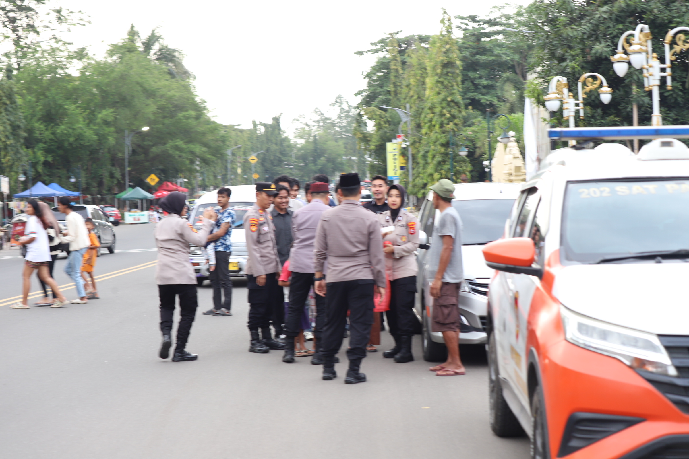 Personel Sat Pamobvit bersama anggota turut berbaur dengan masyarakat, menciptakan suasana akrab dan penuh kekeluargaan. Masyarakat yang melintas menyambut kegiatan tersebut dengan antusias dan apresiasi.