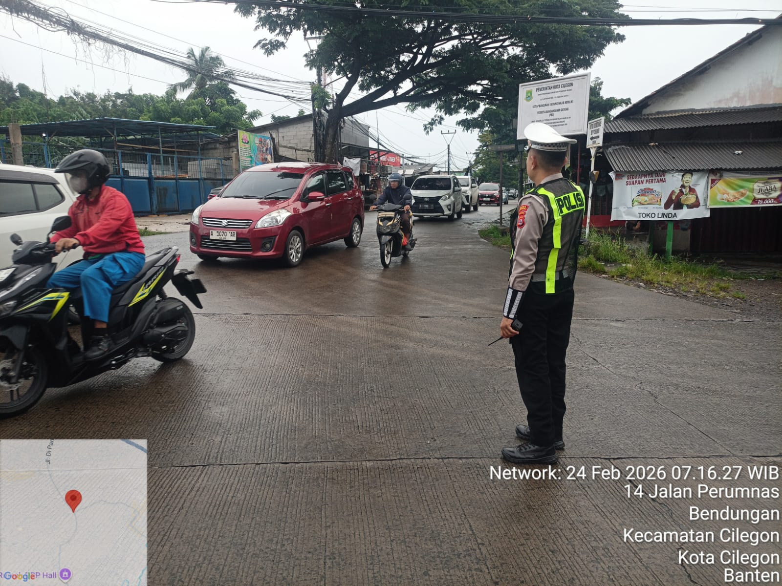 Cilegon, Satlantas Polres Cilegon Polda Banten – Berikan pelayanan kepada masyarakat Kasat lantas Polres Cilegon AKP Ridwan memerintahkan jajaran lalulintas untuk melaksanakan pengaturan lalu lintas di penggal – penggal jalan yang rawan kemacetan di Kota Cilegon, (Selasa,24/2/2026)