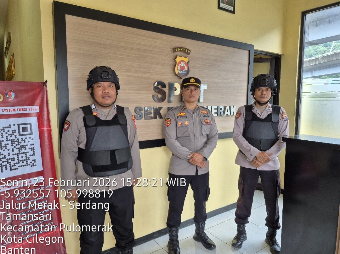Cilegon - Personel piket jaga Polsek Kskp Merak Polres Cilgon Polda Banten melaksanakan siaga 1 Polsek pelaksanaan Sispam Mako oleh piket siaga dipimpin oleh Kspk Polsek Kskpy Merak Polres Cilegon Polda Banten, Senin (23/02/2026).