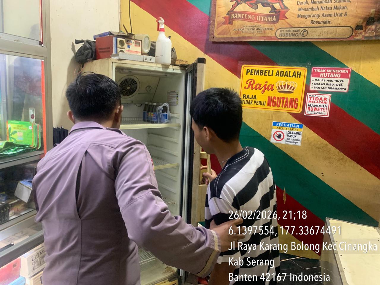 *POLRES CILEGON* Polda Banten.- Polsek Cinangka Polres Cilegon Gencar Melaksanakan Kegiatan Razia Miras(Minuman al kohol) yang selama ini Meresahkan di Lingkungan yang sering di keluhan Masyarakat sering minumbulkan mengeluarkan antar pemuda akibat Meneggak/Minuman Beralkohol di lingkungan khusunya di Darkum Polsek Cinangka Polres Cilegon.Jumat.(27/02/2026).