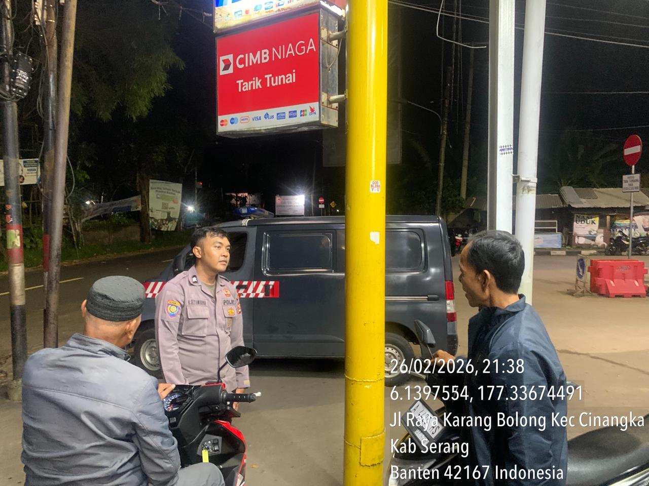 *Cilegon* – Dalam Rangka Pencegahan Kejahatan Jalanan dan Memelihara situasi keamanan dan menjaga serta memberikan rasa aman dan nyaman di masyarakat,Salah satu upaya untuk mewujudkan hal tersebut sebagaimana yang dilakukan oleh Personil Polsek Cinangka Polres Cilegon Polda Banten melaksanakan giat patroli blue light malam hari hingga menjelang pagi, Jumat (27/02/2026).