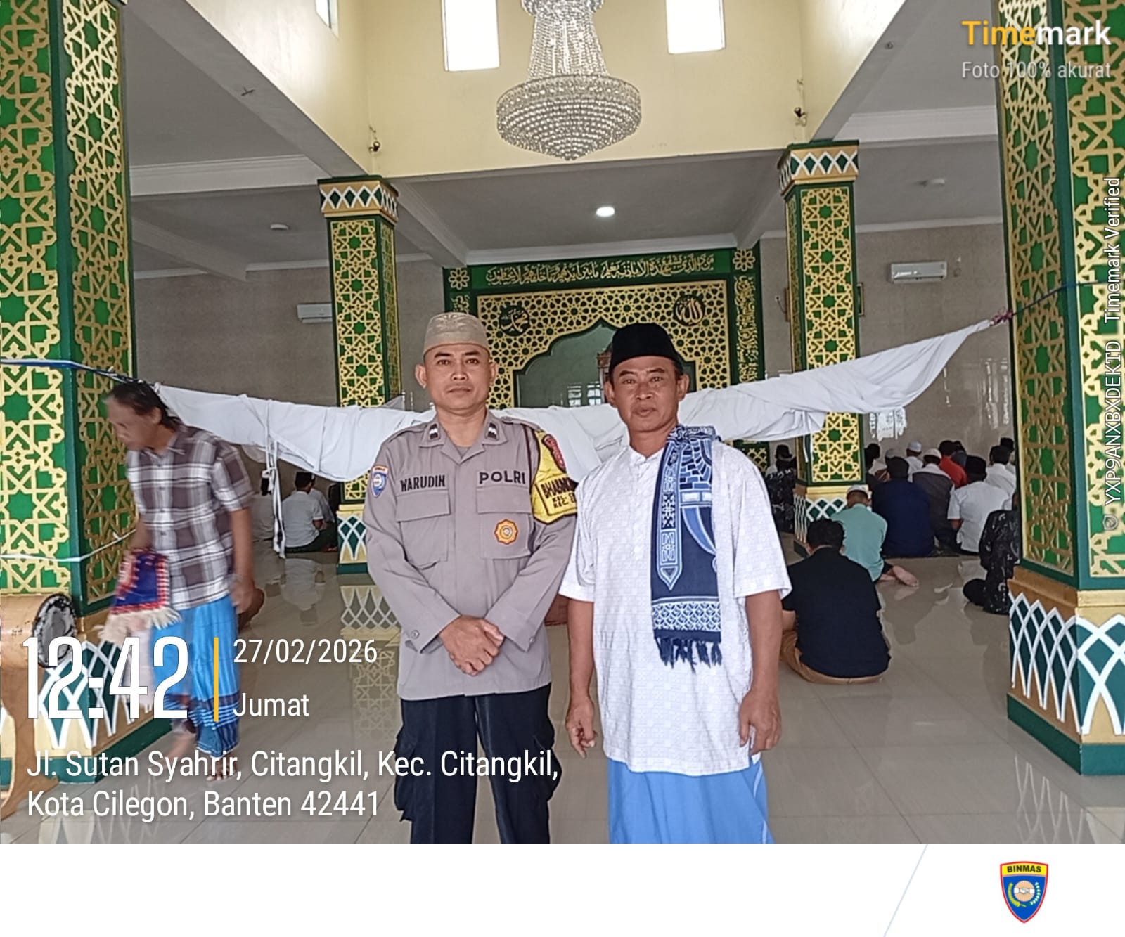 Cilegon - Bhabinkamtibmas Polsek Ciwandan Polres Cilegon Polda Banten Selesai melaksanakan Sholat secara berjama’ah dan Sampaikan Himbauan-himbauan Kamtibmas Kepada Masyarakat Jama'ah Yang ada Dimasjid, Jum'at (27/02/2026).