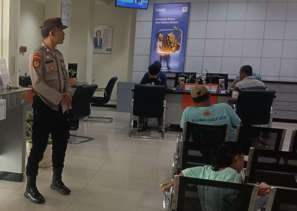 Pastikan kemanan dan kenyamanan nasabah, Satpamobvit Polres Cilegon hadir amankan Bank.