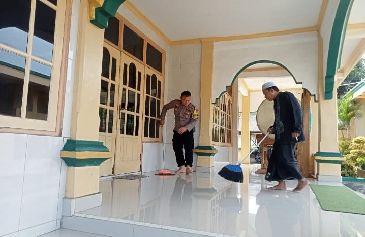 BHABINKAMTIBMAS POLSEK PURWAKARTA BERSAMA WARGA LAKSANAKAN KERJA BAKTI DI MASJID AL-MUTAKIM