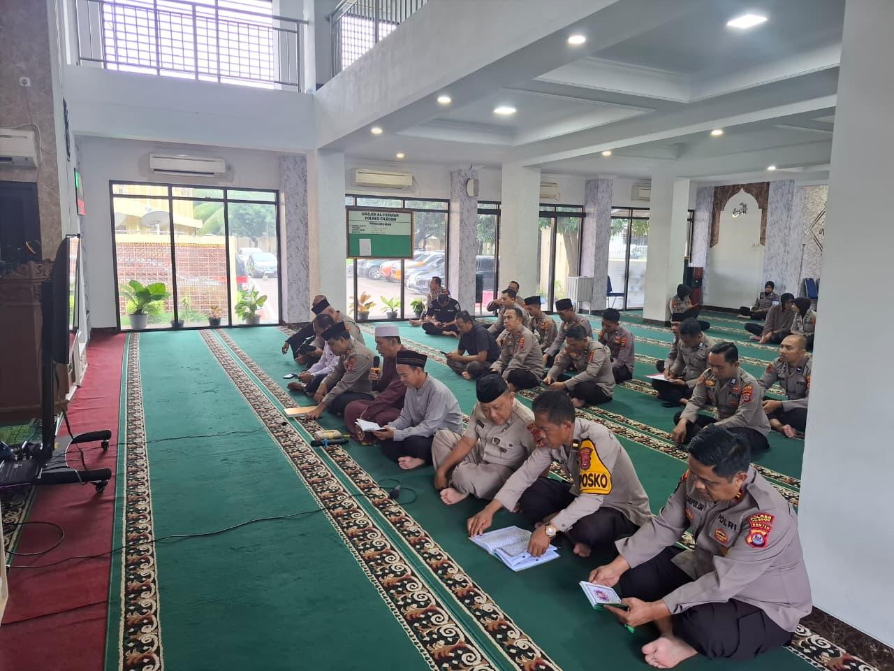 Setelah melaksanakan apel pagi, personil Polres Cilegon yang beragama Islam langsung menuju ke Masjid Al-Hidayah Polres Cilegon untuk melaksanakan pengajian rutin. Pengajian ini diikuti oleh seluruh anggotaPolres Cilegon, baik yang berpangkat Perwira, Bintara, maupun ASN.