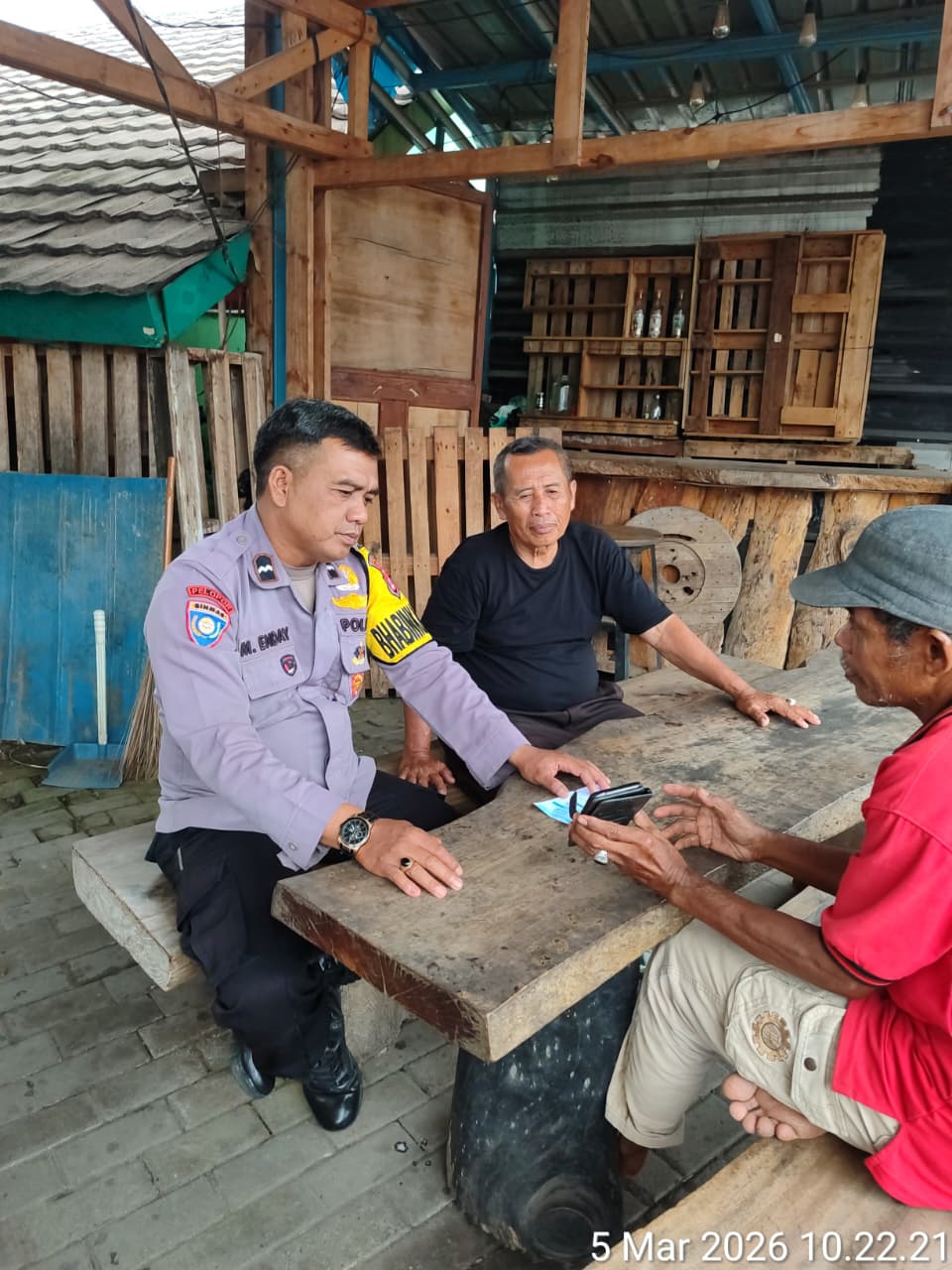 Cilegon - Guna mencegah gangguan kamtibmas, Personil Polsek Ciwandan Polres Cilegon Polda Banten melaksanakan giat Patroli dialogis dipangkalan Ojek (Opang) Pertigaan Simpang Warnasari Kelurahan Kebonsari kecamatan Citangkil, Kamis (05/03/2026).