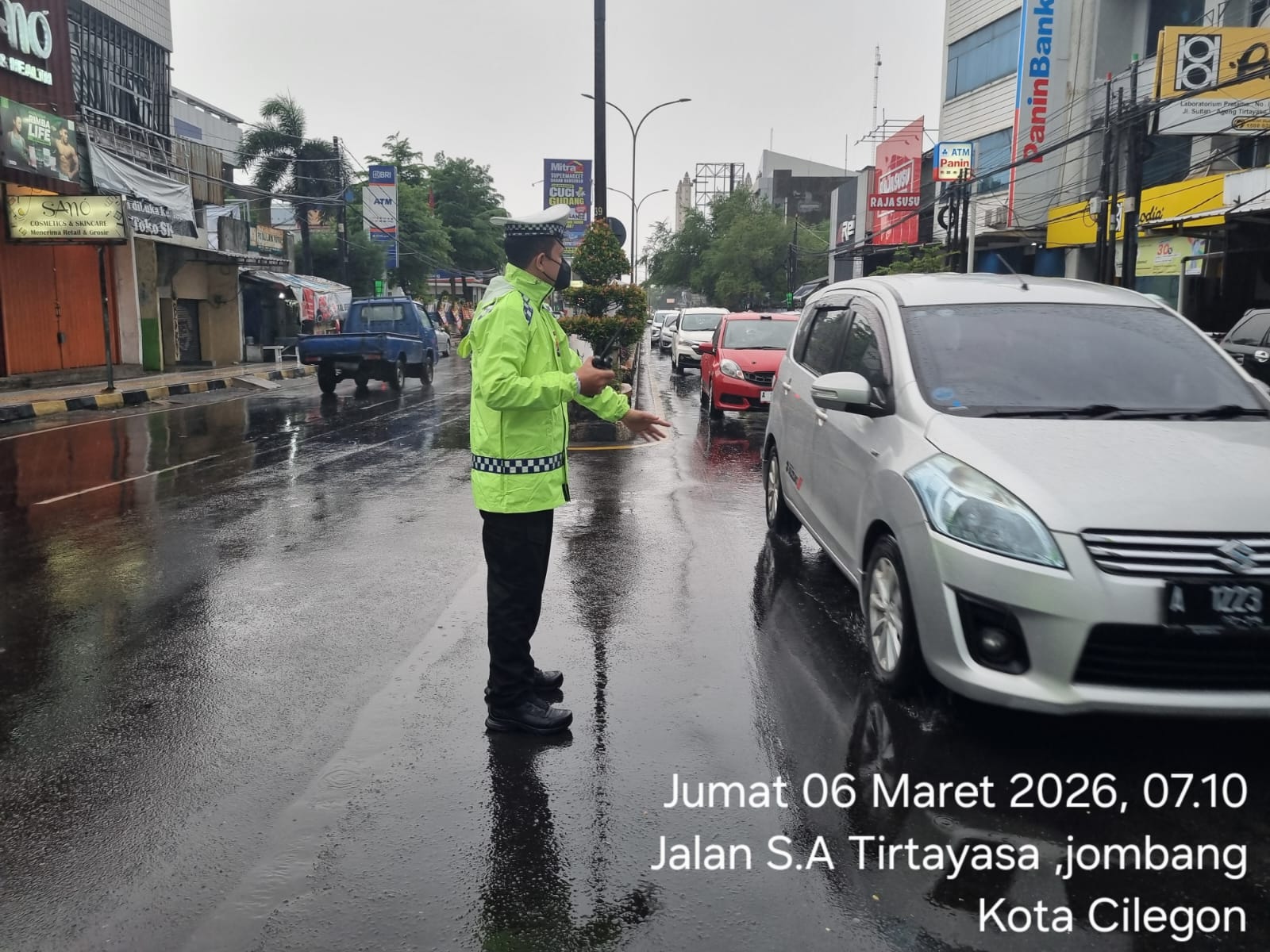 Cilegon – Polres Cilegon Polda Banten, Dalam Mewujudkan Aksi Nyata Pelayanan Kepada Masyarakat, Personil Satlantas Polres Cilegon Polda Banten Laksanakan PECAK (Pergelaran Cepat Anggota Kepolisian) Pengaturan Lalu lintas di wilayah perkotaaan terutama di titik rawan kemacetan dan kecelakaan lalu lintas, Jum’at (06/03/2026).
