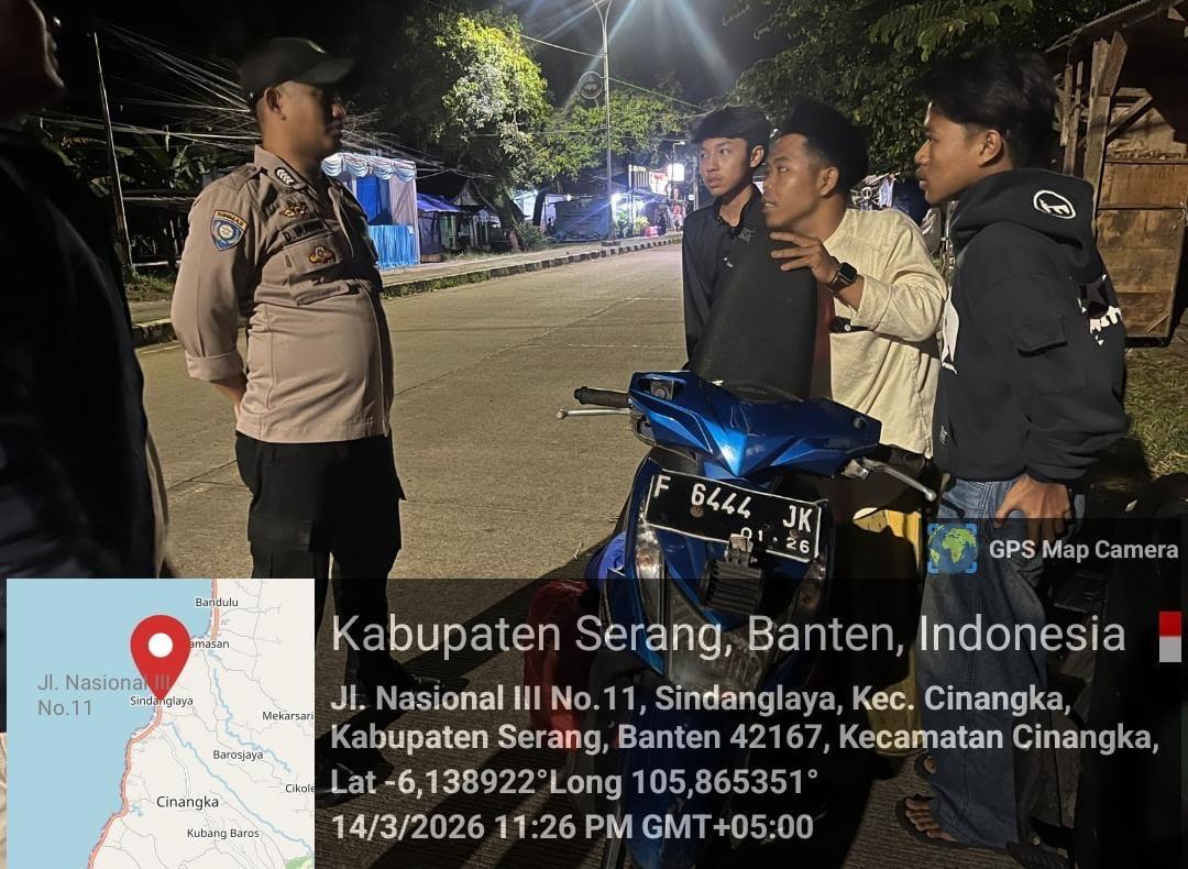 *Cilegon* – Dalam Rangka Pencegahan Kejahatan Jalanan dan Memelihara situasi keamanan dan menjaga serta memberikan rasa aman dan nyaman di masyarakat,Salah satu upaya untuk mewujudkan hal tersebut sebagaimana yang dilakukan oleh Personil Polsek Cinangka Polres Cilegon Polda Banten melaksanakan giat patroli blue light malam hari hingga menjelang pagi, Minggu (15/03/2026).