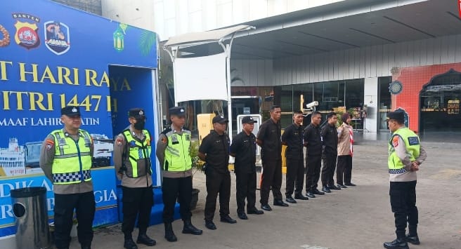 -Polres Cilegon-, 17 Maret 2026 – Polda Banten Dalam rangka memastikan keamanan dan kelancaran perayaan Hari Raya Idul Fitri 1447 Hijriah/2026 Masehi, Ipda Azis Wahyudin selaku Penanggung Jawab Pos Pengamanan (Pos Pam) 3 Landmark Polsek Purwakarta Polres Cilegon memimpin apel pengamanan di lokasi tersebut, Selasa. (17/3).