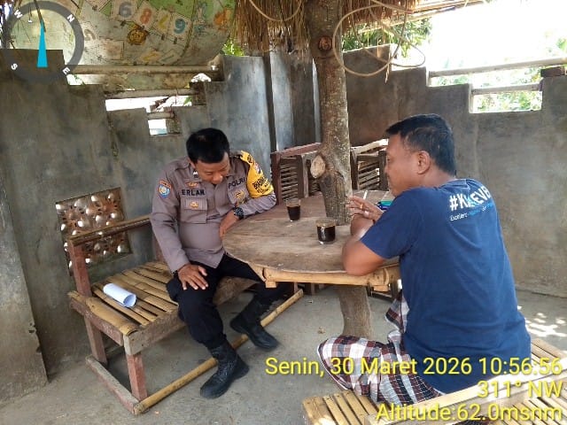 Cilegon - Bhabinkamtibmas Polsek Ciwandan Polres Cilegon Polda Banten Laksanakan Kopi Binmas,Ngopi Bareng Warga sekaligus Berikan Informasi Kamtibmas Dengan Cara Dialogis Bersama Warga Masyarakat, Senin (30/03/2026).