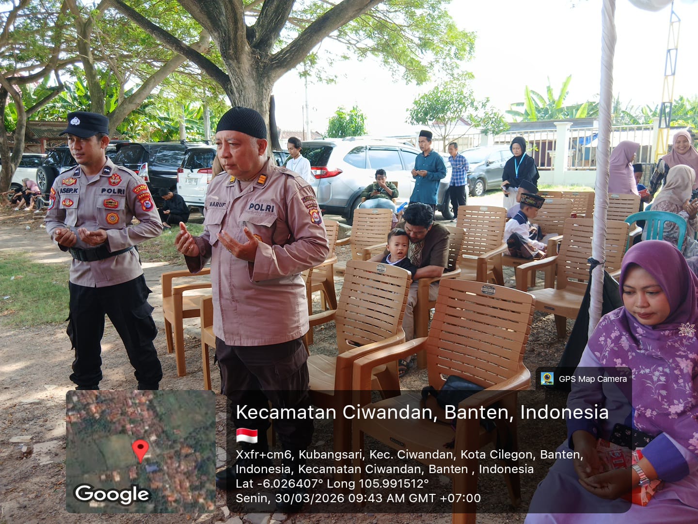 Cilegon - Polsek Ciwandan melaksanakan pengamanan kegiatan Milad YPRK Ke-8 yang bertempat di Aula Gedung 5 Oktober, Link Pagebangan Kelurahan Kubangsari, Kecamatan Ciwandan, Kota Cilegon, Senin (30/03/2026)