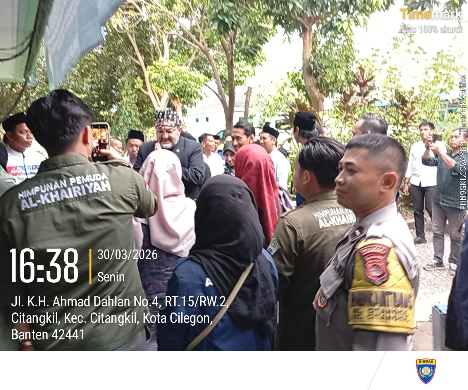 Cilegon -  Bhabinkamtibmas Kelurahan Citangkil Polsek Ciwandan Polres Cilegon Polda Banten AIPDA Warudin, menghadiri kegiatan Halal Bihalal PB Alkhairiyah bersama Duta Besar Republik Islam Iran, MUMAMMAD BOROUJERDI, dan tim di Aula PB Alkhairiyah, Citangkil, Senin (30/03/2026).