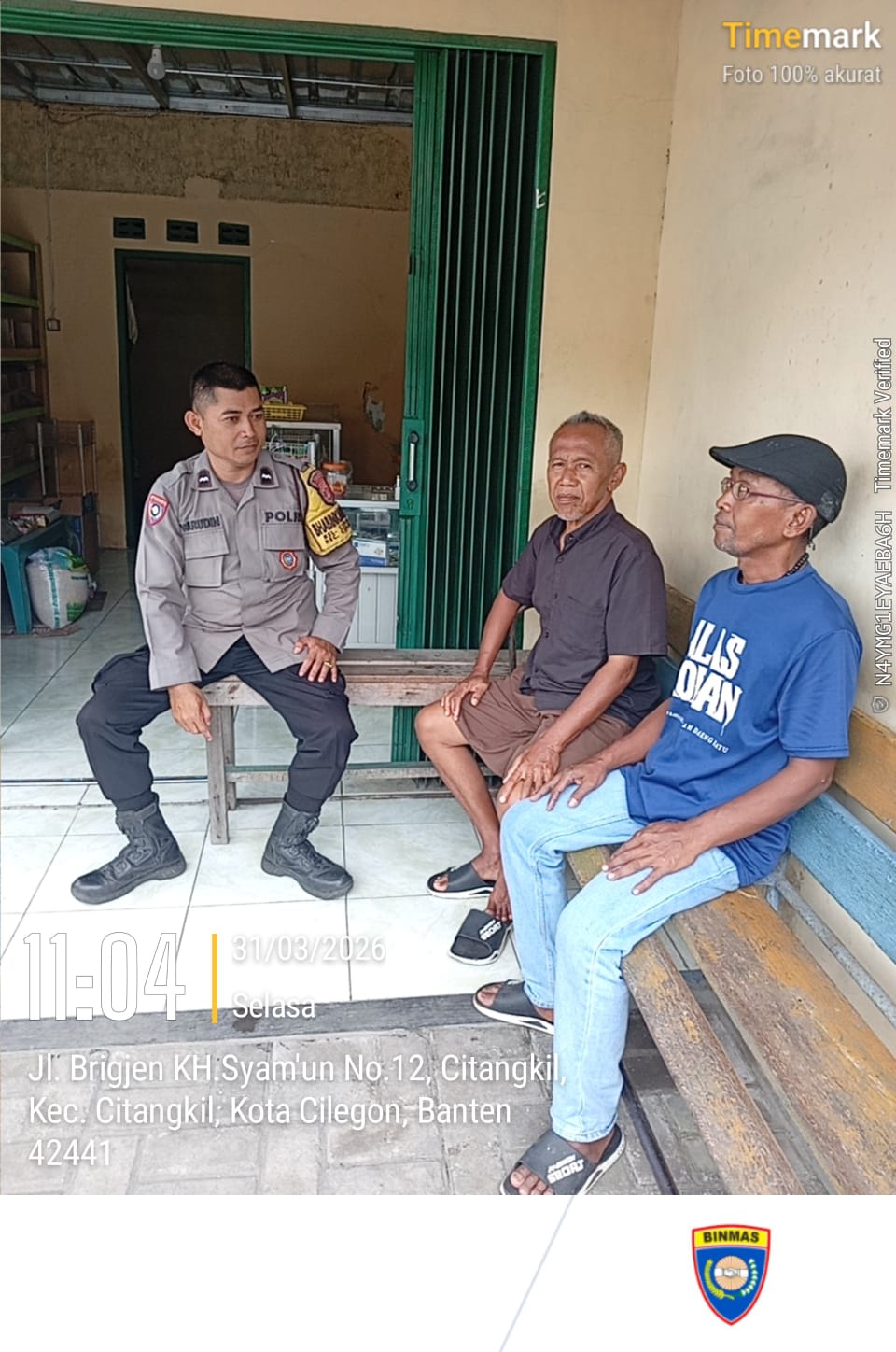 Cilegon - Bhabinkamtibmas Polsek Ciwandan Polres Cilegon Polda Banten merupakan ujung tombak kepolisian yang bersentuhan langsung dengan masyarakat guna menciptakan situasi kamtibmas yang aman dan kondusif, Selasa (31/03/2026).