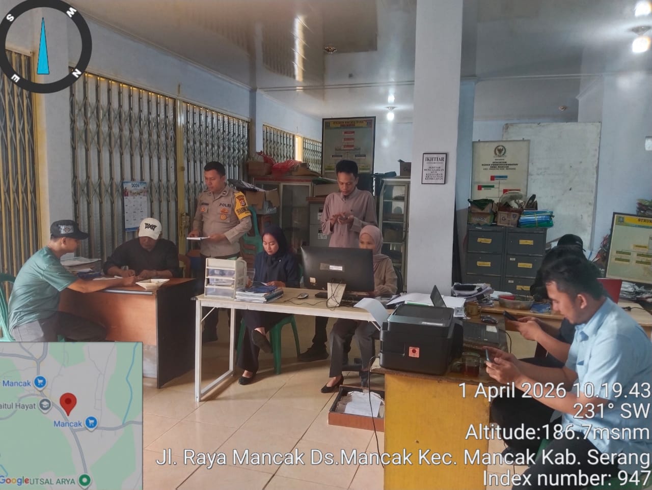 Cilegon – Polres Cilegon Polda Banten, dalam rangka ciptakan situasi kamtibmas kondusif Bhabikamtibmas Desa Mancak Kec. Mancak AIPDA Darsiwan laksanakan himbauan kamtibmas dengan Staf Desa Mancak dan Masyarakat, agar selalu menjaga kamtibmas secara bersama-sama di wilayah. Rabu (01/04/2026).