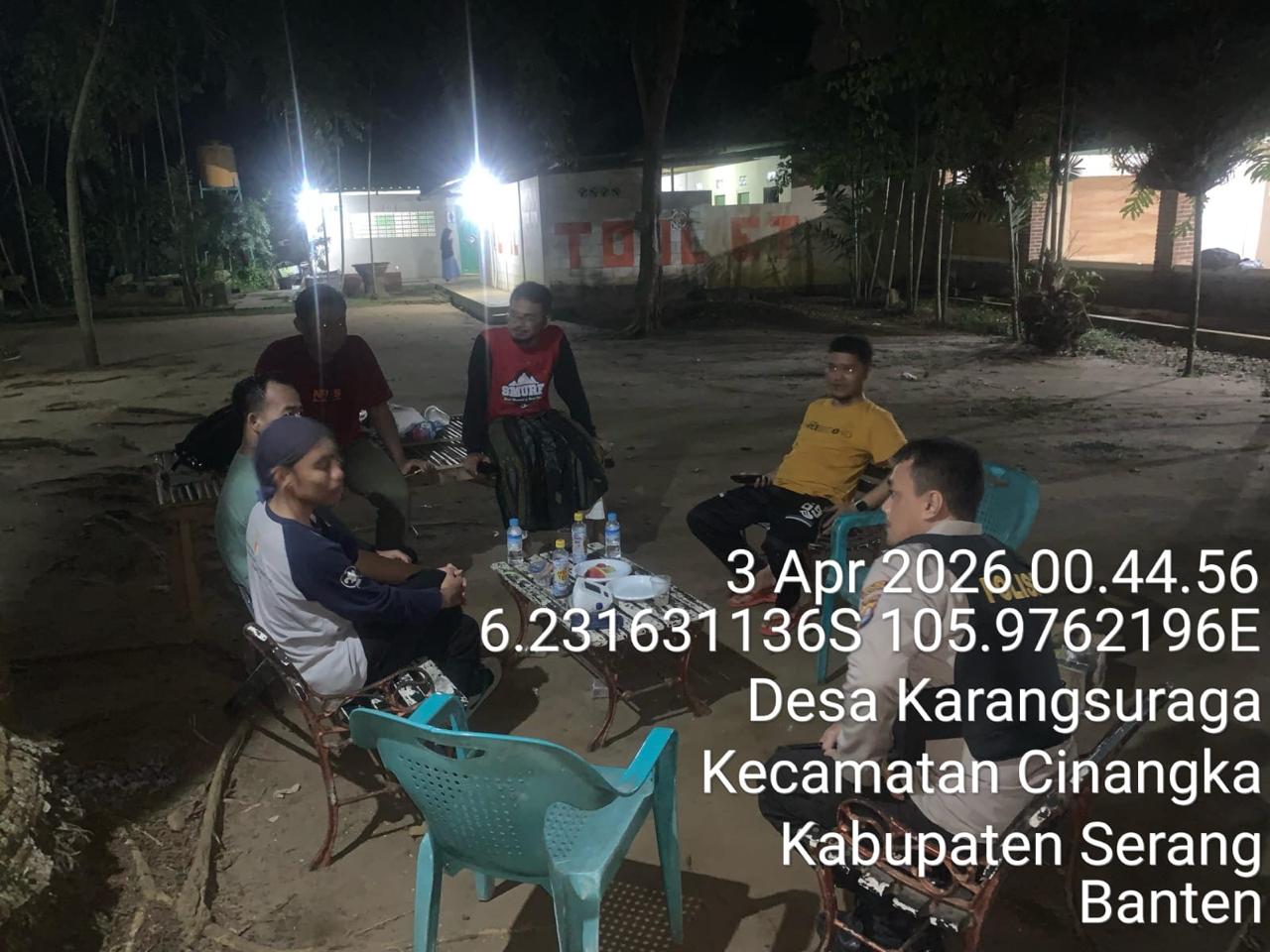 *Cilegon* – Dalam Rangka Pencegahan Kejahatan Jalanan dan Memelihara situasi keamanan dan menjaga serta memberikan rasa aman dan nyaman di masyarakat,Salah satu upaya untuk mewujudkan hal tersebut sebagaimana yang dilakukan oleh Personil Polsek Cinangka Polres Cilegon Polda Banten melaksanakan giat patroli blue light malam hari hingga menjelang pagi, Jumat (03/04/2026).