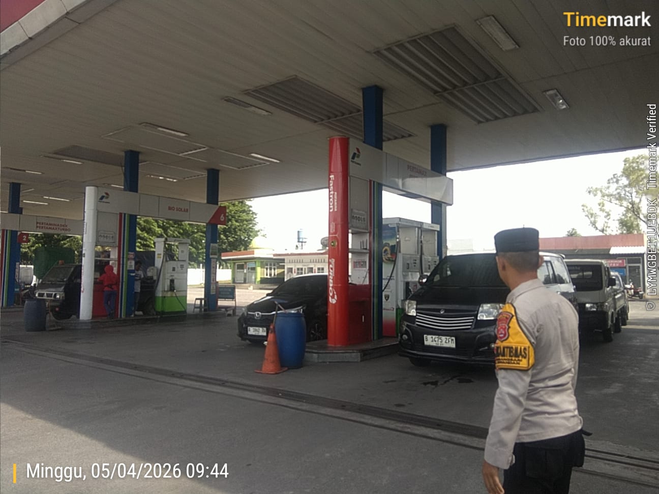 Cilegon - Kepolisian Polsek Ciwandan Polres Cilegon Polda Banten, melakukan pengecekan stok Bahan Bakar Minyak (BBM) di dua SPBU di wilayah Ciwandan, Cilegon, Minggu (05/04/2026).