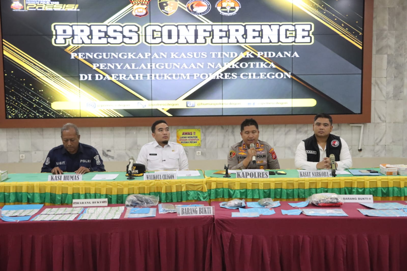 Dari hasil pengungkapan tersebut, polisi menyita barang bukti berupa sabu seberat 120,89 gram serta obat-obatan daftar G sebanyak 1.610 butir, yang terdiri dari 630 butir tramadol dan 980 butir hexymer. Sebagian barang bukti telah diuji di laboratorium forensik, sementara sisanya diamankan di gudang Sat Tahti Polres Cilegon.