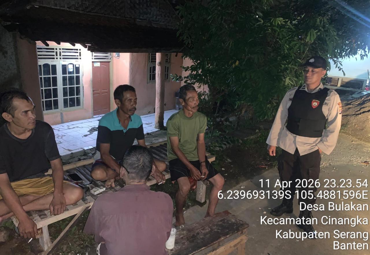 *Cilegon* – Dalam Rangka Pencegahan Kejahatan Jalanan dan Memelihara situasi keamanan dan menjaga serta memberikan rasa aman dan nyaman di masyarakat,Salah satu upaya untuk mewujudkan hal tersebut sebagaimana yang dilakukan oleh Personil Polsek Cinangka Polres Cilegon Polda Banten melaksanakan giat patroli blue light malam hari hingga menjelang pagi, Rabu (15/04/2026).