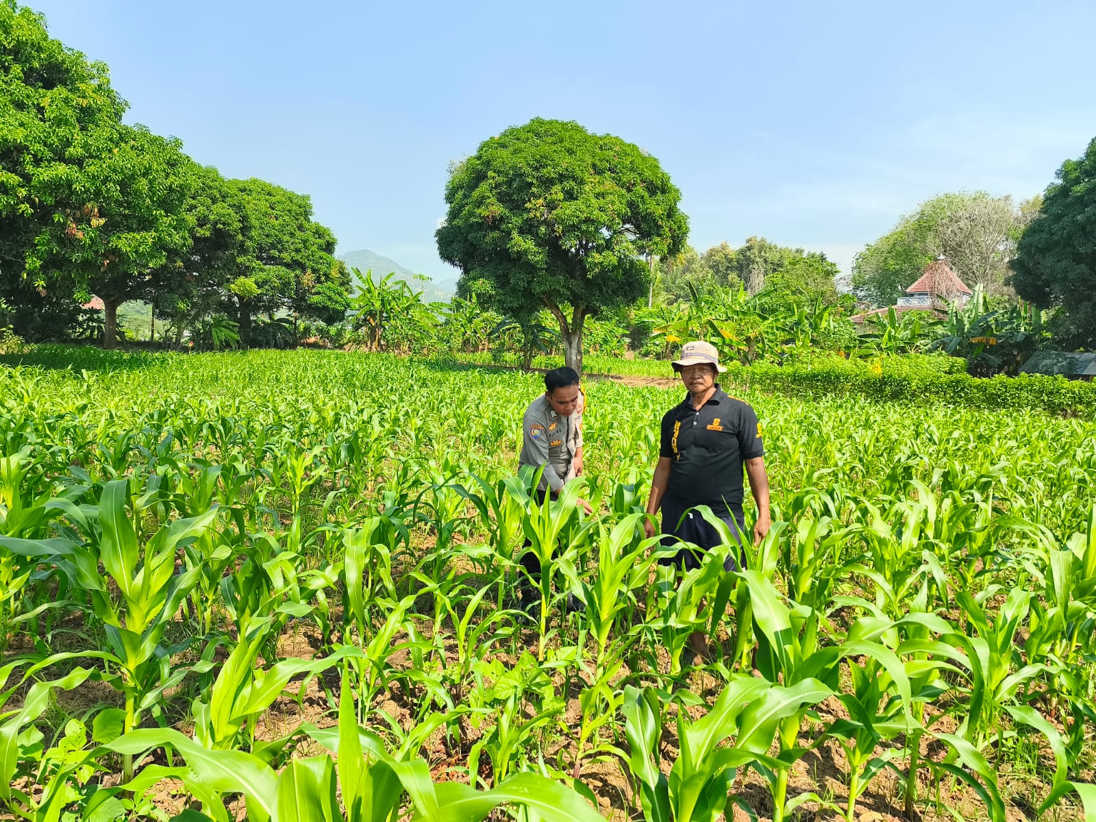Pantau lahan jagung kelompok tani Sinarjaya Kec. Puloampel Merak Banten oleh Bhabinkamtibmas Polsek Puloampel Polres Cilegon.
