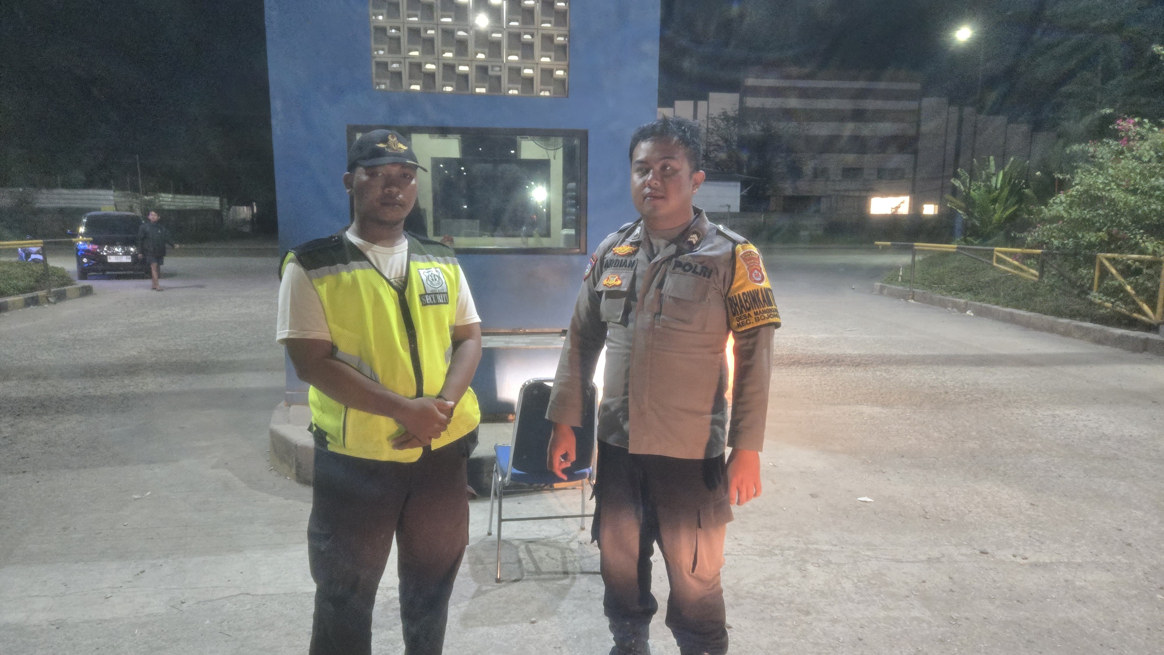 Bhabinkamtibmas Polsek Bojonegara Sambangi Pos Security Ingatkan Petugas Jaga Perkuat Keamanan Lingkungan