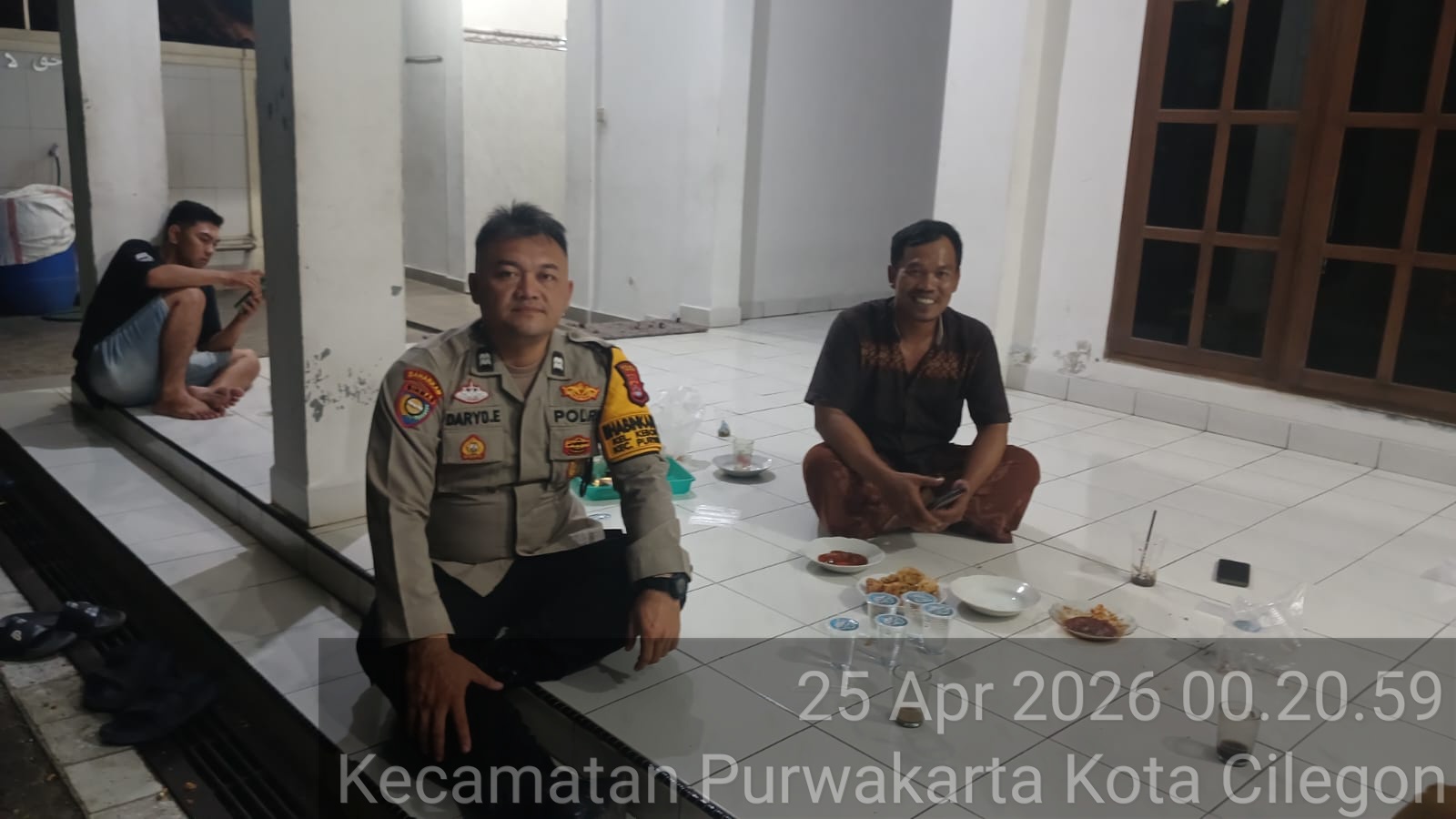 Sambangi Pos Ronda Malam, Bhabinkamtibmas Polsek Bojonegara Menyapa warga pastikan Kamtibmas kondusif dan sampaikan himbauan kamtibmas